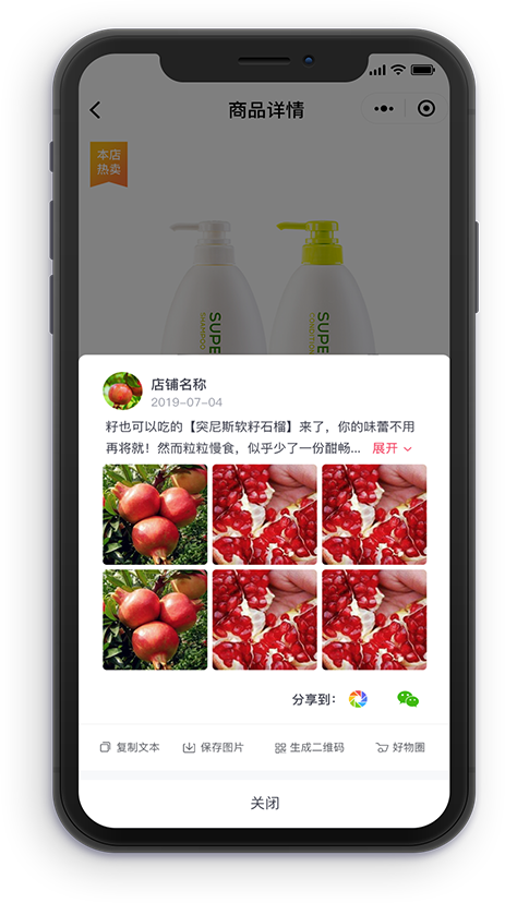 文案一键复制,图片一键保存,便于分销商用最简单便捷的方式轻松发圈,低成本高效率获取流量。