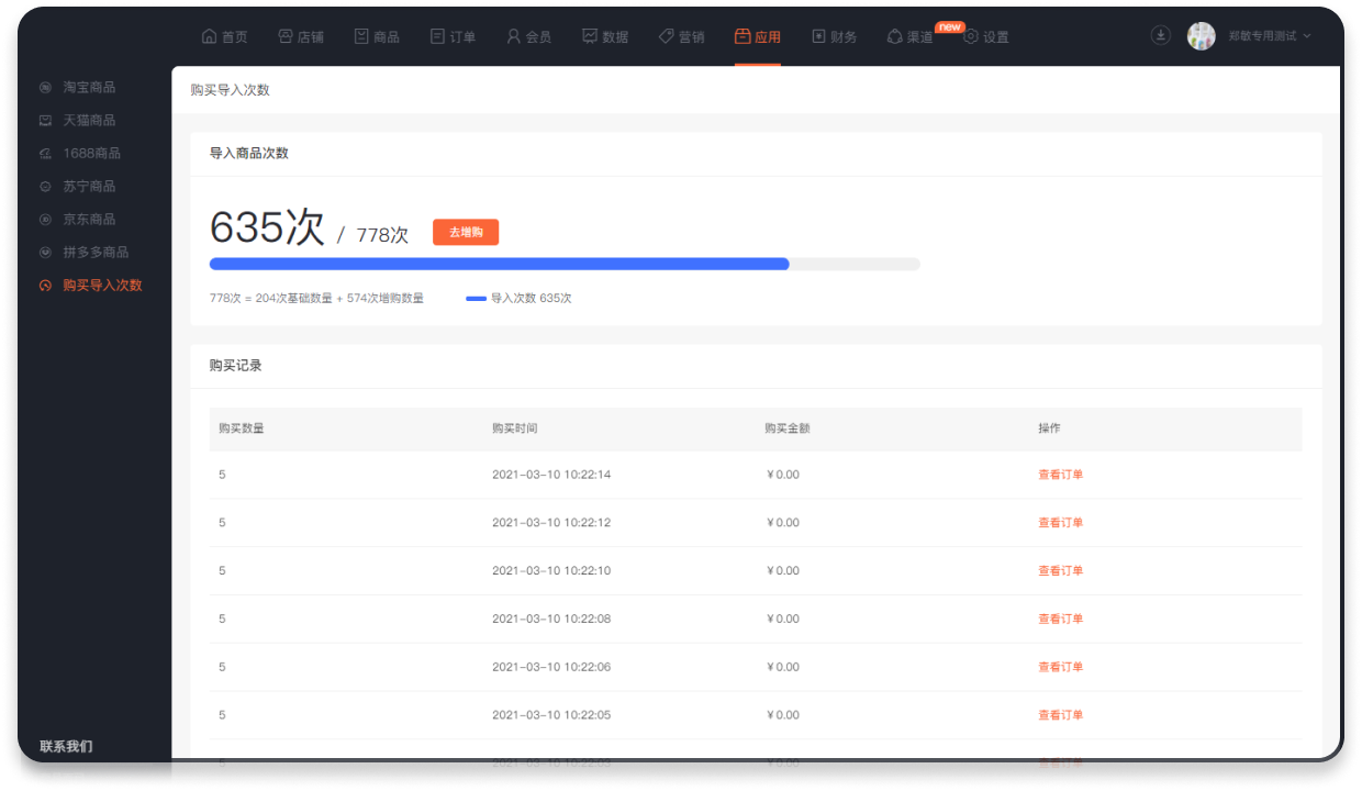 可自定义商品导入次数套餐和价格,支持设置首次购买时赠送免费导入次数。