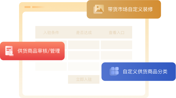 平台搭建带货市场后,可入驻和管理供货商和带货商,帮助用户解决货源和推广问题。