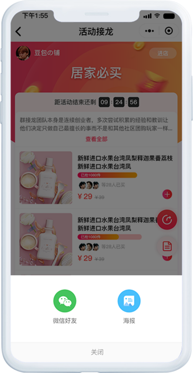 有效营造群内抢购氛围,加快用户购买决策、带动转化,提升店铺订单量。